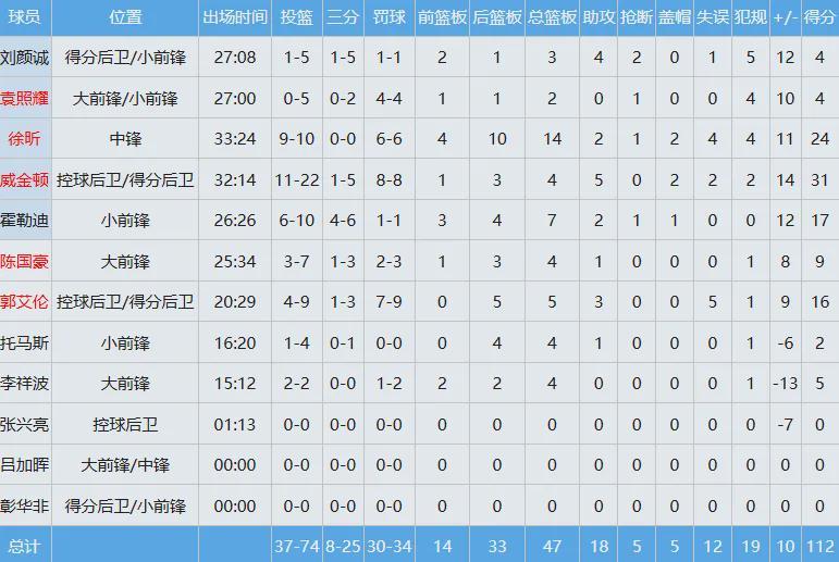 同曦队那边,只有郭昊文一名本土球员得分上双,出战约40分钟,投篮22中9(三分14中5),罚球8中7空砍30分6板6助全面数据,林葳离队征战NCAA之后他成为了球队新门面。